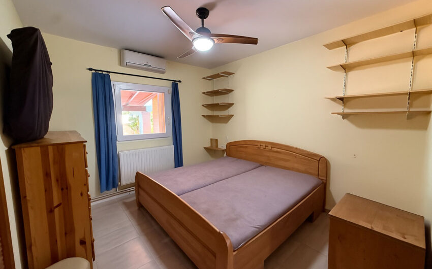 Das Haus verfügt über drei gemütliche Schlafzimmer und zwei moderne Bäder. Der großzügige Wohnraum besticht durch einen gemütlichen Kamin, der zu entspannten Abenden einlädt. Die große Küche ist ideal für gemeinsame Kochmomente.