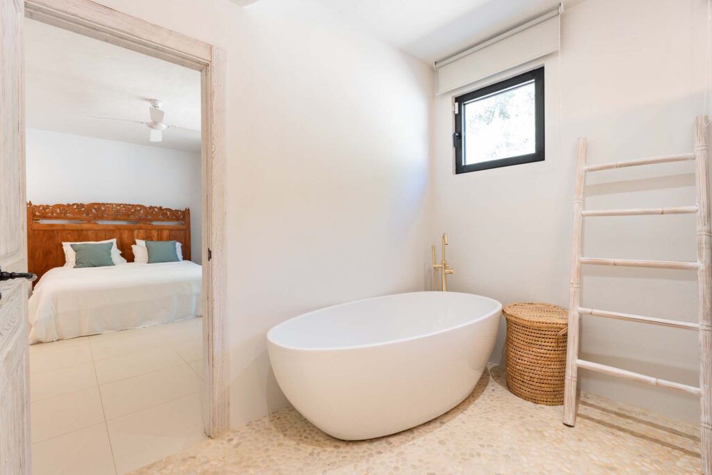 Diese Villa wurde mit viel Liebe zum Detail für ein müheloses Leben entworfen, mit vier Schlafzimmern im Haupthaus, jedes mit eigenem Bad und einem separaten Gästeapartment welches zwei zusätzliche Schlafzimmer bietet und ebenfalls mit eigenen Bädern.