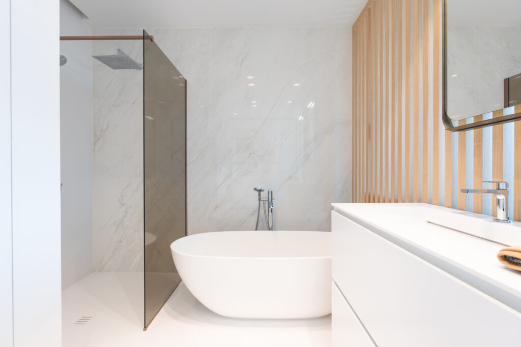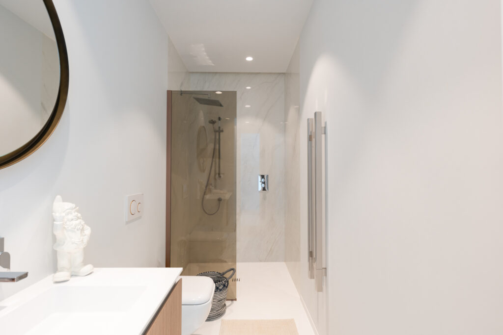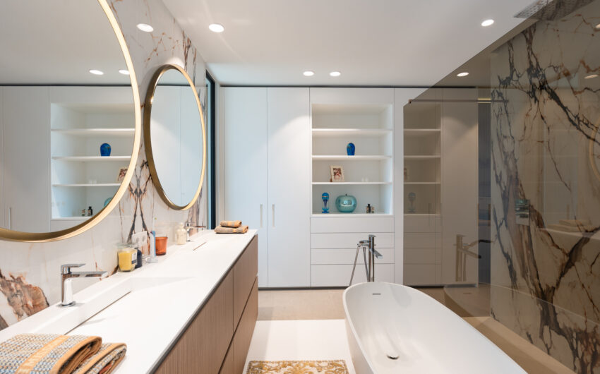 Im Inneren bietet die Villa vier geräumige Schlafzimmer, jedes mit eigenem Bad. Es gibt auch die Möglichkeit, ein fünftes Schlafzimmer einzurichten oder den Raum als Kinoraum oder Fitnessstudio zu nutzen. Der Grundriss wurde so gestaltet, dass man sowohl mit der Familie leben als auch Gastgeber sein kann. Jeder Raum wurde mit viel Liebe zum Detail gestaltet und verbindet moderne Eleganz mit Komfort. Die nahtlose Integration von Innen- und Außenbereichen ermöglicht es, das Haus das ganze Jahr über zu genießen – sei es, um im Sommer am beheizten und gekühlten Infinity-Pool mit integriertem Whirlpool zu entspannen oder in den kühleren Monaten die Aussicht vom Wohnzimmer aus zu genießen.
