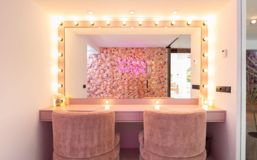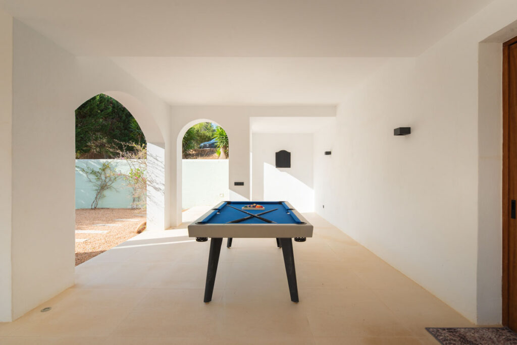The outdoor areas are equally impressive, with landscaped gardens, palm trees, vibrant flowers, green lawns, and multiple terraces for dining and relaxing. The pool area resembles a Caribbean lagoon, complete with shallow lounging sections, sunbathing spots, firepit, pool table, and darts, making the villa perfect for both quiet enjoyment and lively gatherings. Can Bassa also incorporates sustainable features such as solar panels, greywater recycling, and advanced water purification, combining environmental consciousness with high-end comfort. Underfloor heating, integrated air conditioning, superior insulation, and dimmable lighting ensure a luxurious and convenient lifestyle, complemented by a sophisticated alarm system and surveillance cameras.